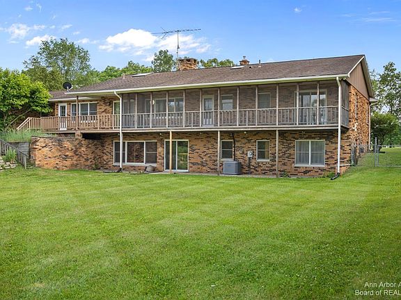 Over 23 acres in Chelsea, look far and wide and you just won't find this!! Award winning Chelsea Schools. This home is all brick and has 5 total bedrooms and 3 bathrooms. The tubs are recessed for ease in getting in and out, something you just don't find. Two lovely wood burning fireplaces, both upstairs and down. A family room, which could be used as a music room, perhaps an in home office, whatever your needs are. Skylights that allow all natural light into the home, so refreshing. A spigot in the garage to wash your vehicles without every going outside, as there is also a drain. Bring your four-legged family members, as a portion of the yard has been fenced off, just to accommodate your babies. A whole other kitchen located downstairs for use, when having a house full of guests. The deck extends the entire length of the home, a portion is screened off to enjoy your morning coffee or afternoon beverage without those bothersome insects. From the primary bedroom you can delight in goin