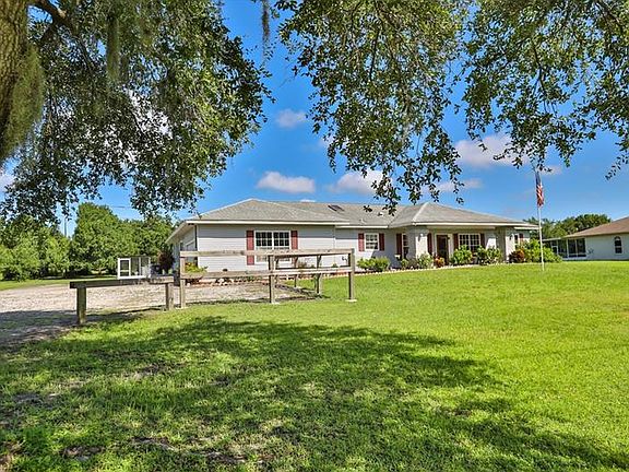 Price improvement. RELAX in this quite 2070 sf pool home on almost 2 acres here in Sundance! Your family will love this 3 bedroom, 2 bath home, with large kitchen family room combo with separate dining room for entertaining. This bonus room is perfect for your office or playroom. Sit on the front porch and enjoy a glass of ice cold sweet tea while taking in this peaceful country setting. You will love having room to roam on this spacious lot and cool off in your refreshing pool overlooking a private pond and amazing sunsets. This home boasts of beautiful french doors throughout, stainless steel appliances. There's room for a hot tub or spa in the enclosed lanai leading to the pool. The master bathroom has been refinished with new granite dual sinks and decorative mirrors and has a deep walk in closet. The garage is open and has a workshop included, Outside a large shed for plenty of storage. Seller is providing a 3 year warranty. The community brags of the 2 large barns with lighted arena and round pen. Walk your horses off into the little Manatee Park directly from the barn. If you prefer the salt life, head over to the Sundance marina and launch your boat and motor to the bay which leads directly to the gulf. Great for fishing and watersports or quietly kayaking or canoeing up river. This property will not last in this sought after neighborhood of Sundance. Convenient to the interstate and centrally located. Be sure to check out the video drone on this property.