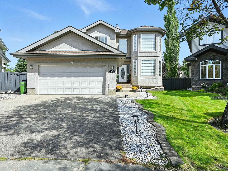 BEST BUY IN TERWILLEGAR GARDENS! Beautiful 4 bdrm + den 2 sty nestled on a huge 11,540 sf PARK like lot in a quiet keyhole, just steps to 2 schools. Exceptional family home w/over 3500 sf of luxury living space incl the finished bsmt. Soaring ceilings & windows in the sun filled living rm & foyer w/curved stairwell. New kitchen 2023 features ceiling height cabinets, quartz counters, S/S appliances, an island & pantry. Family rm w/feature gas FP, breakfast nook, formal dining rm & main floor laundry rm. Upstairs you'll find a luxurious primary suite w/a spa-like 5 pc ensuite, a versatile bonus rm + 2 big bedrms. Repainted home/railing, custom window coverings in 2023, sleek modern black LED lighting & ceiling fans. Bsmt has a family rm, rec/exercise area, 4th bedrm, full bath & storage. Enjoy outdoor living in the massive sunny backyard & stone patio—perfect for outdoor entertaining! 23x20 garage. Located near park/pond, rec center, shopping, eateries & transit. Easy access to the University/Downtown