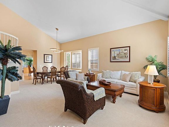 Welcome to The Fairways....La Costa's sought after, gated and tranquil community above the La Costa Golf Course and just minutes to shopping, restaurants, theatres and the Omni La Costa Resort. Sought after floorplan with primary suite and a second bedroom down with a second full bath on first floor. Third bedroom is up with a full bath and loft that makes a great office, den or guest suite (could be converted to a 4th bedroom). Spacious primary suite opens to private patio. Kitchen and breakfast nook open to cozy family room with fireplace which opens to patio. Separate dining area off living room for more formal entertaining. Light and bright interior with high ceilings and great natural light. Lushly landscaped, private yard with flagstone patio. The Fairways is a desirable gated community with private streets, 2 walking trails accessed only by this neighborhood that go from one end of the neighborhood to the other, and 7 interior parks. Low homeowner's fee and no mello roos!