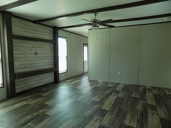 Owner says IT'S GOTTA GO. He's throwing in a double-door stainless steel refrigerator with ice maker, along with washer and dryer. All you have to do is sign and close. Compare to new built, low mileage, 2023 high-end home. Easy to maintain and mow lot; nicely painted decks with vented steel skirting, with easy under carriage access doors. Low HOA dues; community center, 3 boat ramps 2 play grounds, and community pool located a street away. Home features wood looking linoleum throughout, no carpet to deal with, decorative beams and trim in living room along with shelf for flat TV, decorative can lights, and as an added treat, a must have in Texas, new ceiling fans in every bedroom. Don't forget about the new decorative blinds sure to help on the electric bill, in addition to the freebies. Home comes equipped with stainless steel stove and dishwasher, as well. Wonderful open flow throughout. Don't let this one get away: come take her for a test drive TODAY, you won't be disappointed.