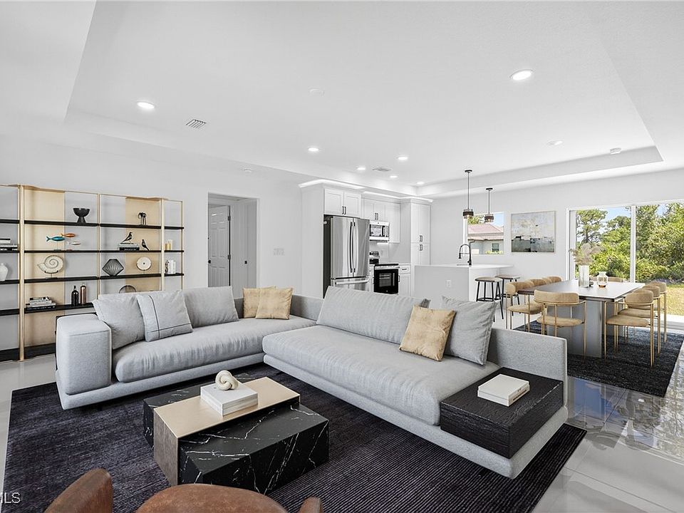 *Move-in ready 3-bed, 2-bath home with 1,222 sq ft under A/C in a desirable Lehigh Acres location! CO in hand and seller offering incentives. Bright, open floor plan with large tile flooring, tall kitchen cabinets with integrated LED lighting, and designer light fixtures throughout. Luxurious bathrooms feature full-size backlit mirrors and high-end finishes. Epoxy-coated garage floor adds style and durability. Professionally landscaped front yard boosts curb appeal. Conveniently located near Sunshine Boulevard (Main Street), shopping, schools, and major roads. Schedule your showing today — this home won’t last!