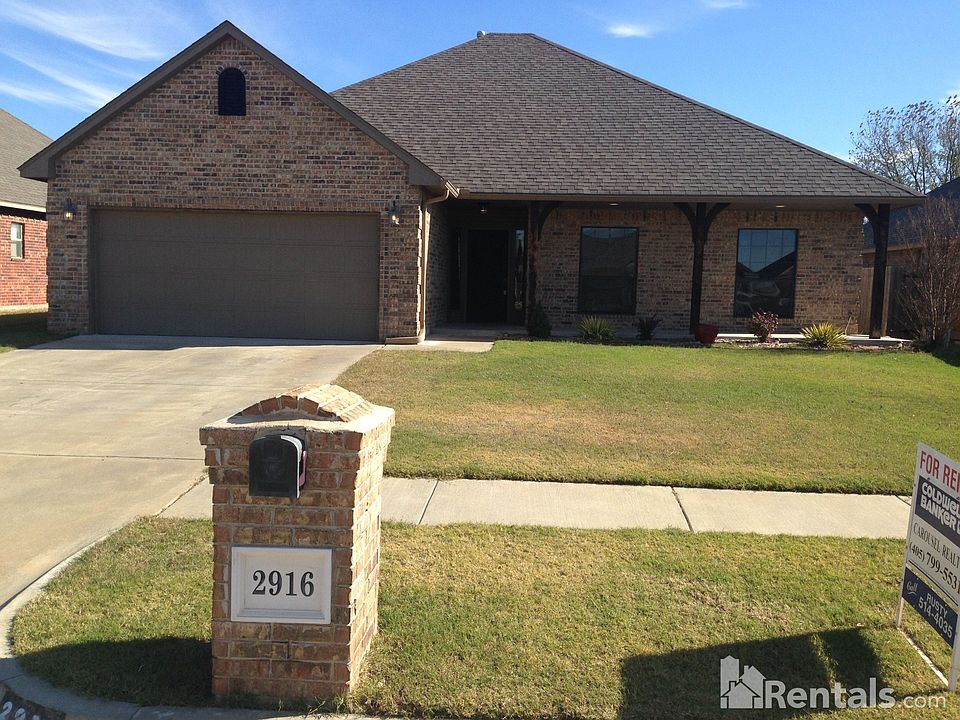 This is a gorgeous 3bed 2 bath executive rental home at 1600 sq ft with 2 car garage, stainless steel kitchen appliances, washer & dryer, and alarm system. This house will not last long with fast access to I240 and I35. Great location to all Moore restaurant and retail stores, schools and only minutes from Tinker AFB. With his and hers walk in closets, gas fireplace, and granite countertops you will fall in love with this house. Garage Door opener, Jetted Tub in master bathroom, Faux Wood blinds in all rooms, and ceiling fans throughout. HURRY AND LEASE TODAY! Rent is $1295/month, $500 month security deposit, Dog friendly with deposit ($500 - 1/2 non refundable), Discount to active military personnel, tinker employee or 2 year lease. ONG, OGE, Moore Utilities, Cox Cable ready. All utilities paid by tenant and in tenants name. Must have good rental history and stable income.