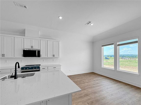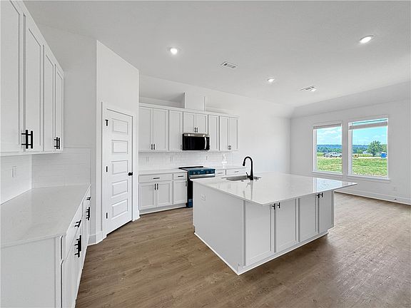 Sold before print! Fabulous Frisco plan with a 3-car garage in Monitor Meadows, where you'll experience modern luxury in Springdale, Arkansas. Our meticulously crafted floor plans provide ample space for you to grow and thrive. Bedroom 1 will have a fan, and your fabulous ensuite will have an oversized walk-in shower, elongated commode and quartz counters. You'll find fantastic quartz counter tops also in the kitchen with tile backsplash and 42-inch upper cabinets. Black plumbing fixtures throughout! LED lighting throughout! Living room will have a fan and a modern electric fireplace with a poplar mantle.
