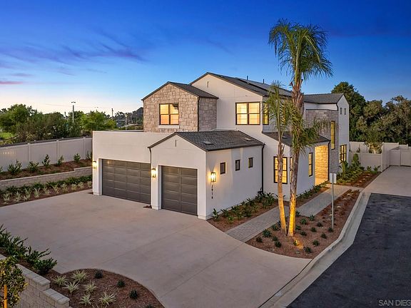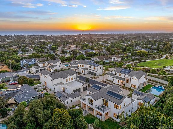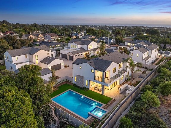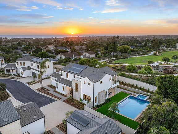 This Stunning California Contemporary home is privately located within Highland 5, the gorgeous enclave of 5 brand new homes in Carlsbad. It has been masterfully designed with family and entertaining in mind. No expense has been spared with high-end finishes throughout the home, beautiful hardwood flooring, custom cabinetry, high ceilings, oversized black framed glass doors and windows which flood the house with natural light. The chefs kitchen, at the center of the home, boasts Wolf and Sub Zero appliances, floor to ceiling custom cabinetry, a huge island, gorgeous Quartzite Calcutta slab countertops and backsplash, and a large pantry to complete the chef’s kitchen. The open plan kitchen and dining room lead seamlessly to the living room. This floor also features a secondary ensuite bedroom/study, powder room, and laundry room. The home epitomizes the Californian dream with large sliders that lead out to a covered loggia, a beautiful and private landscaped yard with a magnificent swimming pool, jacuzzi, and outdoor kitchen. Indoor-outdoor living at its best. Upstairs the primary ensuite retreat has a large balcony. There are two secondary ensuite bedrooms and a large game room. This home offers the perfect blend of luxury, comfort, and an active family lifestyle. There is ample storage throughout the house and a large 3 car garage. This beautifully designed home has it all!Welcome to Highland Five, an unparalleled premier enclave featuring five exquisitely crafted custom California Contemporary estates located in the highly sought after coastal community of Olde Carlsbad. The homes are located just one mile from the Village, with the beautiful beaches just beyond. The Highland Five are thoughtfully created by local, family-owned builders CalWest, to enjoy the highly desirable Southern California lifestyle, with seamless indoor-outdoor living spaces. Three of the estates feature detached guest houses, and two have swimming pools. With the Primary suite, two secondary bedrooms and a bonus loft upstairs, each home has another ensuite secondary bedroom on the main level. All of the homes feature plentiful storage, solar panels, landscaping and so much more. Just minutes from the freeway for an easy commute, and close to top rated schools, parks, sports facilities, trails, beach, shops, cultural amenities and all that beautiful Carlsbad and San Diego County have to offer!