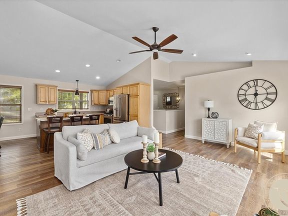 Modern finishesUpdated flooringDetached shedGorgeous rock fireplaceCharming curb appealRemodeled primary bathHigh-efficiency heating system
