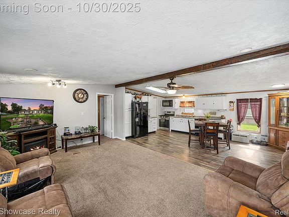 Welcome to this well-maintained ranch-style home, featuring exquisite landscaping. The open-concept design flows seamlessly from the spacious living room into the dining room and kitchen, making it perfect for entertaining. This home boasts three bedrooms and two full bathrooms with a well-thought-out floor plan. All appliances are included, such as the washer and dryer, and you'll enjoy the comfort of ceiling fans in every room. Fresh new carpet adds to the inviting atmosphere. The backyard offers a covered patio, ideal for relaxing or entertaining. Located just a short distance from two parks with access to Lake Erie, this property is perfect for those who love the water and outdoor activities. A little TLC will make this gem shine even brighter. Don't miss out on this fantastic opportunity. (Possession is TBD. Contingent on the seller's finding a home of choice.)