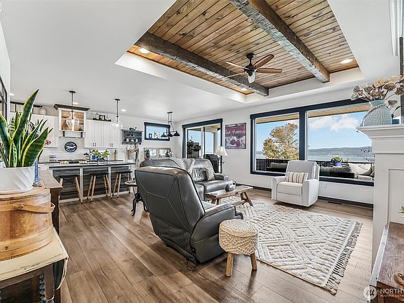Newly built in 2022, this home features main floor living w/ a daylight level & is beautifully appointed w/ high-end finishes & attention to detail throughout. Views of Mt. Baker, the Cascades & Port Susan can be enjoyed from inside & on the deck that runs the length of the home. The stunning kitchen flows seamlessly into the dining & living areas & onto the large deck; perfect for entertaining! Wake up to the view from the primary bedroom w/ walk-in closet & luxurious bthrm. An office, full bth & 2nd bdrm complete the space. The daylight level features a large, finished room—ideal for a studio, shop or whatever you can imagine. Enjoy beach rights where Orcas & Gray whales visit often. Close to all amenities on Camano, the no ferry island.