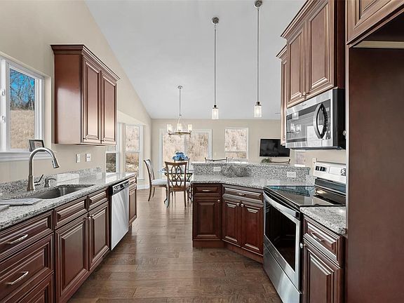 Final Opportunity at Enclave at Strawberry Ridge! The Display Home. Luxurious, low-maintenance villa in a private cul-de-sac within the premier subdivision of Arnold. The Hickory model boasts a traditional ranch floor plan with both formal and informal dining areas. Includes finished lower level with bedroom, full bathroom, and family room. Features vaulted ceilings, granite countertops, stainless steel appliances, hardwood flooring, base molding, and upgraded doors. The main floor master suite features a walk-in closet and luxury master bathroom with double sinks and large shower. The second bedroom easily converts to a study via a pair of french doors off of the foyer. Main floor laundry. The Strawberry Ridge subdivision features a swimming pool, clubhouse & 5-acre lake. Excellent location with easy access to Hwy 55, restaurants and retail.
