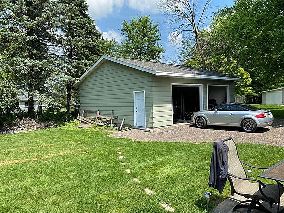 Numerous updates including a kitchen remodel on this convenient ranch home with a large detached 28x32 heated and cooled shop with lift. Large 2.5 attached garage, with plenty of parking. New windows throughout, fresh paint and blinds. New water heater, newer furnace and whole house water softener system. Large man-cave in basement. House is close to freeway but backyard is park-like with firepit. House is on a well but city sewer. New 10x12 storage shed and 8x10 shed. Tons of storage. We will work with your buyers agent. Moving out of state. Motivated Seller. Must Sell!!!