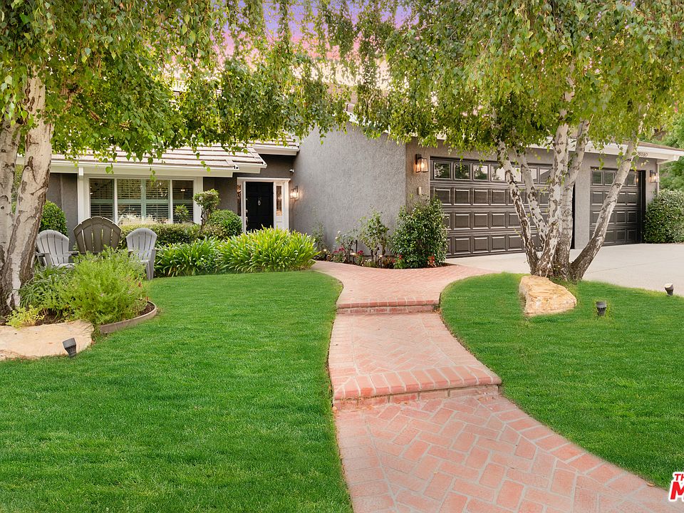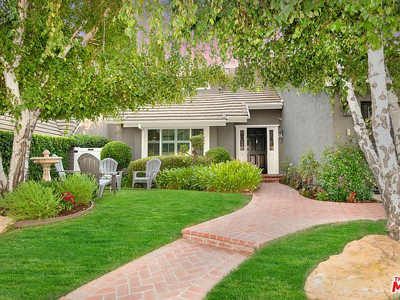 Spectacular home in Agoura Hills. Beautifully manicured landscaping w/ mature white birch trees leads to an inviting 2,610 sq. ft. 2-story home in an amazing neighborhood! The open floor plan offers soaring ceilings on the main floor & an abundance of natural light + newer dual pane windows throughout. The spacious family room features walls of windows, French doors, wood burning fireplace, built in shelving & is open to a gorgeous gourmet kitchen. Quartzsite countertops, stainless steel appliances, generous storage, & huge center island are some of the many details. Upstairs, the gracious master features a private balcony & luxurious en-suite w/ double vanity, soaking tub & separate shower. Big & bright bedrooms w/ mirrored closets share a full bathroom w/ an additional bed & bath downstairs. Private entertainer's backyard w/ sparkling spool, fruit trees, veggie garden & covered patio. Near dining, entertainment & shopping, & mins. to beaches. This stunning home is not to be missed!