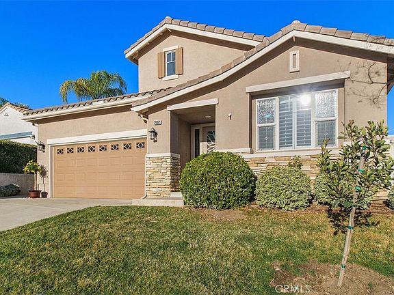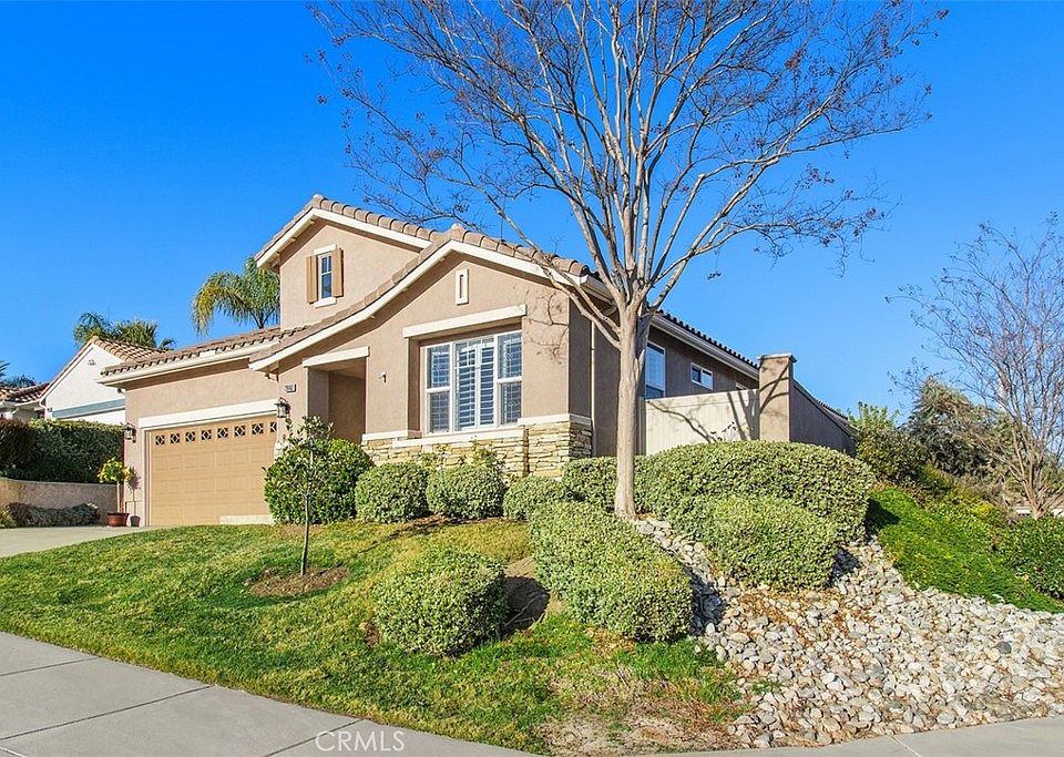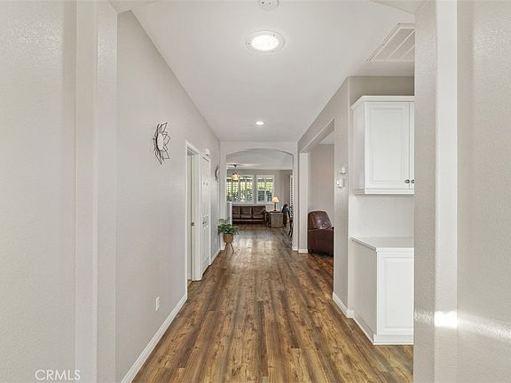 Gorgeous highly upgraded / remodeled TRENTO Model in the 55+ Resort Style Community of the OASIS. This Fabulous elevated corner lot is walking distance to the Clubhouse and a MUST see! Luxury Wood Plank Laminate Flooring through out the main areas of the home. Plantation Shutters, Custom Fans, Base Molding and Solar Tubes! Fantastic Floor Plan with two bedrooms the Guest Bedroom is separate from Primary at the front of the home with an adjacent full bath! Large center office featuring a full built in wall unit with a potential conversion to third bedroom. Great Room has been modified to remove side nook from side of fireplace to open the space and enlarge the area! Gourmet kitchen with white cabintry and newer Matte Slate Appliances : Dishwasher, Microwave, Gas Cook Top, Refrigerator and Double Ovens! A full size Custom Pantry was built in across the hall from the double ovens. Primary Bath is a complete remodel with a Custom Tile Schluter Walk in Shower with NEW Vanity, Quartz Counters, Mirrors, Lighting and Plumbing Fixtures! All leading in to the Xtra large walk in closet area. Guest Bathroom remodeled as well to include Quartz Counters/ new Vanity, Lighting and Plumbing Fixtures ( rectangle sink) NEW HVAC Units installed in 2024 ( 4 ton- 14.2 SEER Gold rating) and a Tankless Water Heater ( Navien Brand). Super size Laundry with xtra length and 14 storage cabinets, two folding counters, soaking sink and pull out desk area! Separate door to side yard. The Entertainers rear yard is a DELIGHT. Full length alumawood covered patio ( with slats for light) with slider entry from both the Kitchen area as well as the Primary Bedroom. Beautiful Hardscape, Planters , Vinyl Fencing and a large Astro Turf area. VIEW the Video Tour for optimal pictures. Do not miss this EXCEPTIONAL property! HOA covers maintenance and water of the front yard as well as the trash service. Minutes from all shopping, medical, restaurants , Golf and freeway access. Close to all So Cal Beach, Desert and Mountain Locations and just a short drive to the Famous Temecula Valley Wine Country.