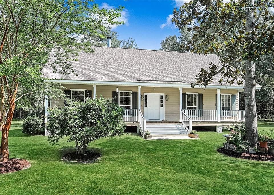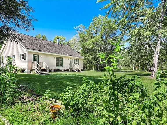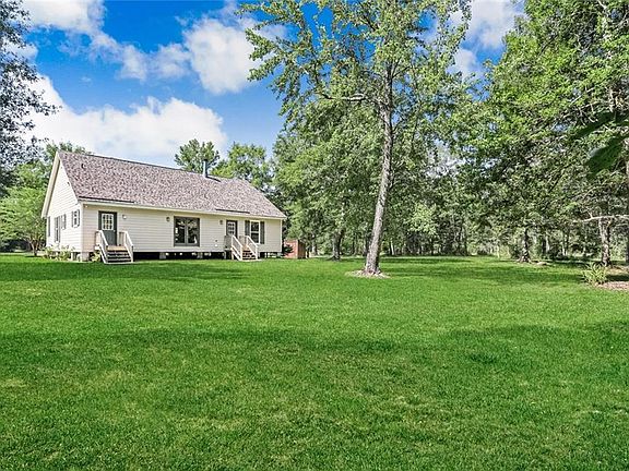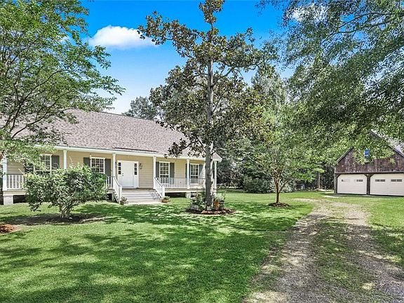 Enjoy quiet country living on 10 acres, in a 3 bedroom / 2 bath Acadian Home, hardy plank exterior, new 50yr roof, functional cypress shutters, no carpets, Hunter fans, stone fireplace, large laundry room, huge attic. Traditional 2-story Barn w/ workshop, 25x43, w/ full bath & 100amp power. Property has chicken coup for farm fresh eggs, herb garden and walking trails through the woods. Two minutes to boat launch and The Trace is just blocks away. Easy access to Hwy190, I-12, Causeway & Flood Zone is C!