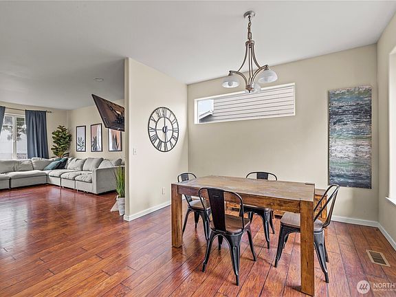 Spacious 5-bedroom, 2.75-bath home tucked away on a quiet cul-de-sac in Puyallup! The open-concept main floor features vaulted ceilings, a cozy gas fireplace, and a light-filled kitchen with plenty of storage and room to gather. The seller recently updated the tile flooring downstairs and refreshed the ensuite bathroom with new floors and finishes. Generously sized bedrooms offer space for everyone, plus a fully fenced yard, attached 2-car garage, and nearby community park. Convenient location close to shopping, dining, and freeway access — welcome home!