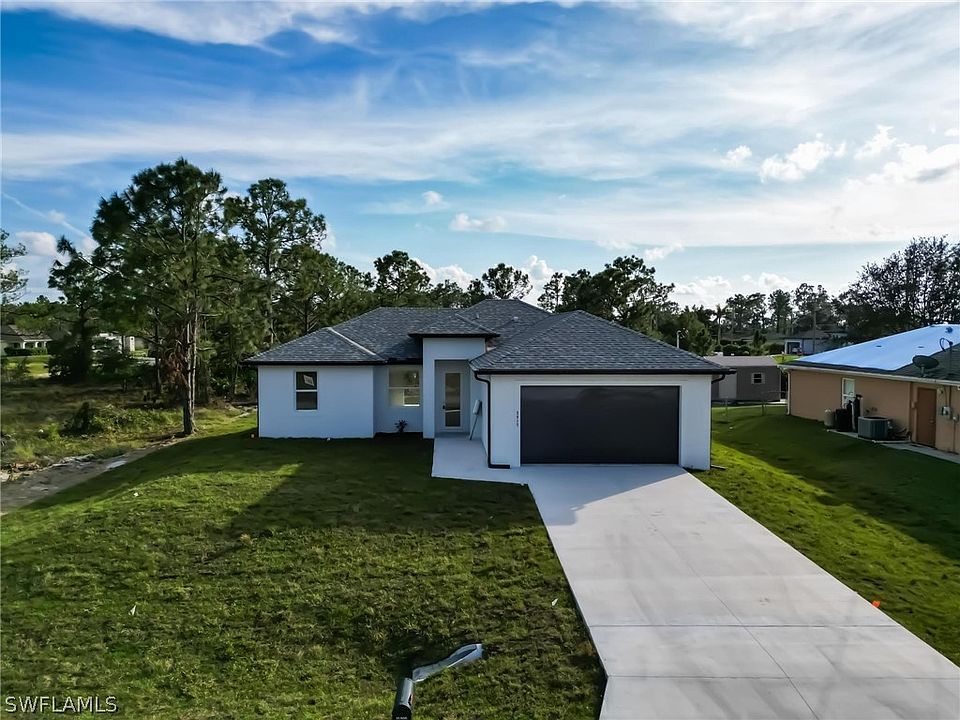 Come check out this, Beautiful modern new construction home located in the most desirable area of Lehigh Acres. This Home features 3 bedrooms, 2 bathrooms ,attached 2 car garage. All tile throughout, granite countertops, all stainless steel appliances, beautiful white cabinets. Bonus stackable washer and dryer included. With irrigation system and much more... You can't miss out price to sell quick.