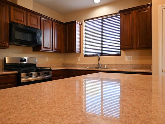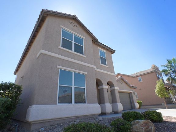 Beautiful house in North Las Vegas, Gated Community. Corner Lot. 3 bedrooms, 2 1/2 baths.Formal Dining room, Granite counters, ceiling fans, large back yard with covered patio. The Primary bedroom has a walk-in closet & balcony. Appliances included. No Pets. Apply online at BlackandGoldRealty.