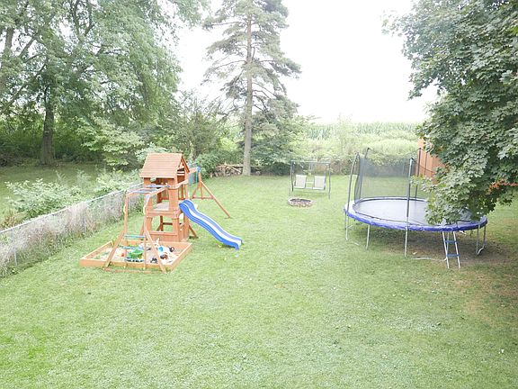 3 bedroom walkout ranch with nice big deck facing large beautiful private fenced backyard and beyond open fields and woods past patio doors! Basement is partially finished, could be much more. Hardwood floors. Replacement windows. Tool room walk out. Wide driveway. for parking. Stationary car port.