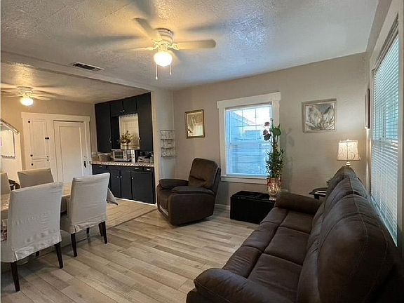 Detached one-car garageLush gardenWide access pointsComfortable sitting roomRoll-in showerUpdated kitchenLaminate flooring