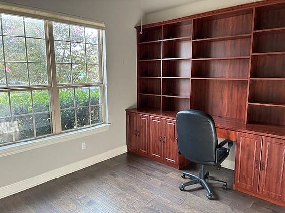 All on one levelLarge covered patioFamily roomOpen and bright kitchenNice studyAbundance of counter spaceBuilt in book cases