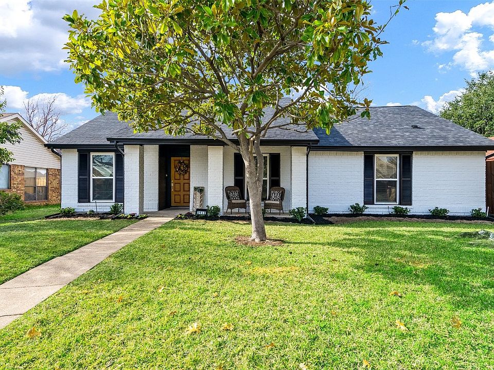 Complete Top Quality Upgrades! Open floor plan with all new kitchen featuring quartz waterfall counters, glass tile backsplash, new cabinets with glass fronts, stainless appliances, upgraded Stainless vent over glass top stove, and apron front stainless sink. Dining area open to kitchen and living has huge built in window seats. Living area offers high ceilings and a stunning fireplace. Flex space by the entry can be a home office or homework play space. The generously sized primary suite features high ceilings and a completely remodeled bathroom with freestanding tub, oversized glass shower. Two secondary bedrooms and guess bathroom are also completely updated and upgraded. 2022 Improvements include fresh paint inside and out, LVP flooring throughout, as well as all new lighting and plumbing fixtures. Transferable foundation warranty and new roof, HVAC, water heater, fence, garage door, sprinkler system, and landscaping. Located within minutes of restaurants, shopping, and highways!