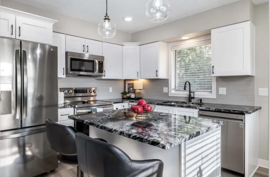 Finished basementQuiet cul-de-sacModern open layoutElevated ceilings with beamsBright roomsCozy fireplaceQuartz countertops