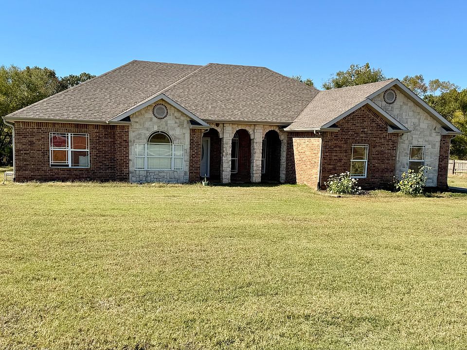 Discover this 4-bedroom, 2-bath brick home set on a spacious 1-acre lot, offering the perfect blend of comfort, style, and outdoor enjoyment. The open-concept floor plan features a bright and inviting living area, seamlessly connecting to the kitchen and dining spaces ideal for family gatherings and entertaining. The kitchen features granite countertops, custom cabinets, and a great workspace for the home chef. Enjoy a desirable split-bedroom layout with the primary suite privately situated on one end of the home, complete with a relaxing en suite bath, while the remaining bedrooms offer space and comfort for kids or guests. Step outside to experience country living! The property includes an underground storm cellar for peace of mind, a tranquil pond, and ample space for outdoor cookouts and weekend get-togethers. Whether you're looking for a place to raise a family or a peaceful retreat away from town, this home has it all.