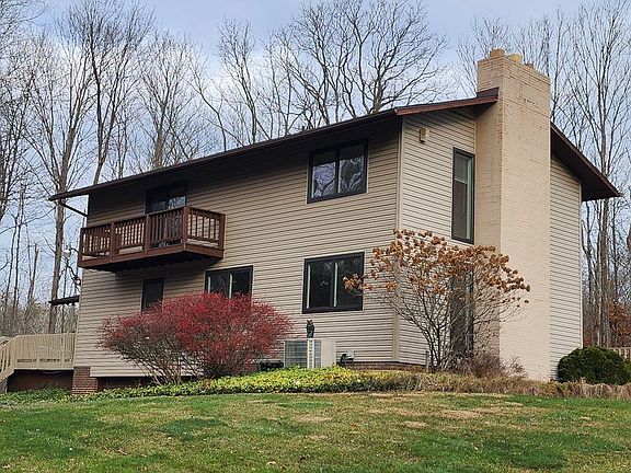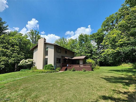 Property features a secluded, spacious home on 4.77 private acres in Bath Township, Revere Schools. Nestled against a stunning wooded backdrop with rolling landscapes and a ravine, this property offers a true retreat-like setting away from the hustle and bustle of daily life. The acreage provides potential for a garden, a small barn for one horse, or simply a serene green space to enjoy. As you drive along the asphalt driveway to the crest, the home emerges high on the property surrounded by mature trees, beautiful perennials, and multiple decks perfect for entertaining. A second detached garage with power and ample parking adds convenience and flexibility.