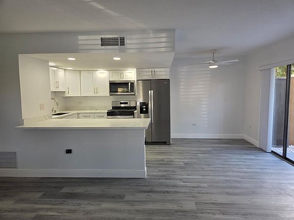 Sleek quartz countertopsRemodeled bathroomsHigh-end vinyl flooringNew impact windowsNew wood kitchen cabinetsNew stainless-steel appliances
