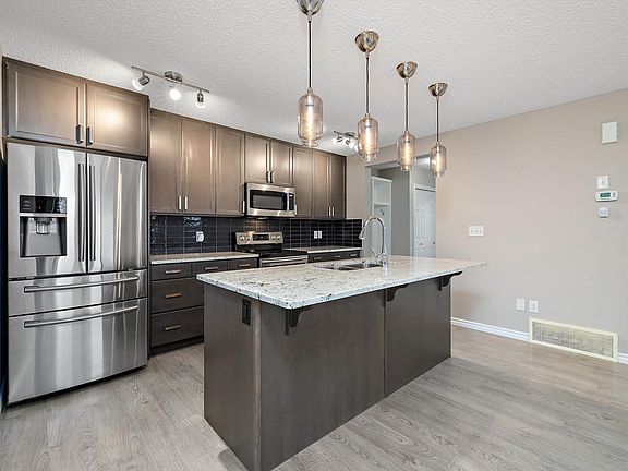 Welcome to this stylish 1,446 sq. ft. two-storey home in highly sought-after ROSENTHAL. Featuring 3 BEDROOMS, 2.5 BATHROOMS, and a DOUBLE DETACHED GARAGE, it offers comfort, convenience, and modern finishes throughout. The main floor boasts a bright open layout with a stunning kitchen complete with GRANITE COUNTERTOPS, STAINLESS STEEL APPLIANCES, a LARGE ISLAND, and UPGRADED LIGHTING. A spacious dining area, 2-PC bathroom, and built-in MUDROOM with custom storage add to the functionality. Upstairs, you’ll find a generous primary suite with a 4-PC ENSUITE, two additional bedrooms, and UPPER-FLOOR LAUNDRY. The unfinished basement is ready for your personal touch. The garage includes shelving for extra storage, and the home comes equipped with a WATER FILTER and SOFTENER SYSTEM. Situated on a corner lot with great curb appeal and steps from the NEW RECREATION CENTER, PARKS, TRAILS, and west-end AMENITIES—this move-in-ready home is a must-see.