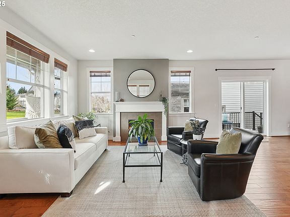 Welcome to this “Better Than New” home in the heart of Villebois. Designed with an exceptional floor plan, this home features a rare main-level bonus room—perfect for a playroom, cozy den, or office. The open-concept main level offers a spacious family room with a gas fireplace, flowing into a chef’s kitchen with all-quartz countertops (a premium builder upgrade), stainless steel appliances, a large island, and full-height backsplash. A bright dining area leads to the expanded deck, creating a functional, low-maintenance outdoor space ideal for entertaining, gardening, or pets. Positioned off the street with a corner-lot feel, this home is filled with natural light and offers serene green space views. Upstairs, the vaulted primary suite is a true retreat, featuring a soaking tub, walk-in closet, and scenic views. Three additional bedrooms provide flexibility, two with stunning Mt. Hood views and breathtaking sunrises. The tuck-under 2-car garage offers ample storage and spacious hall closet/mudroom. All appliances stay—including the garage fridge—making this home truly move-in ready. Located in one of Wilsonville’s most coveted communities, enjoy access to multiple parks and trails, a pool, sports courts, dog park, farmers market, holiday events and a vibrant plaza—all just minutes from top-rated schools, dining, and I-5. This is Villebois living at its best—don’t miss it!