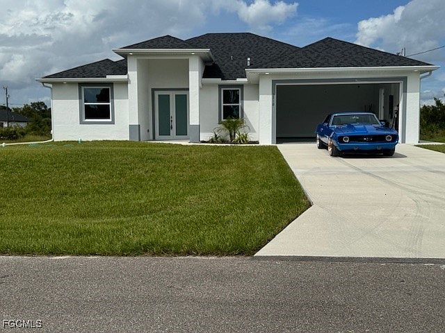 Seller is offering $10,000 toward buyer’s closing costs and prepaid items! CORNER LOT - ELEGANT NEW CONSTRUCTION HOME. 3 BEDROOM, 2 FULL BATHROOMS, DEN/FAMILY ROOM AND 2 CAR GARAGE. THE HOME OFFERS IMPACT-PROOF WINDOWS AND DOORS WITH PORCELAIN FLOORS THAT EXTEND THROUGHOUT THE HOME. TALL 8FT DOORS THROUGHOUT THE HOME INCLUDING INTERIOR DOORS, ENTRY FRENCH DOORS AND FRENCH BACK DOOR OUT TO THE LANAI. THE KITCHEN IS EQUIPPED WITH CUSTOM WOOD CABINETS WITH SOFT CLOSE DOORS, SPICE RACK, LAZY SUSAN, GARBAGE CAN STORAGE, QUARTZ COUNTER TOPS WITH QUARTZ BACK SPLASH, PANTRY AND STAINLESS STEEL APPLIANCES. QUARTZ COUNTERTOPS IN BATHROOMS WITH FLOATING CABINETS AND CUSTOM SHOWER DOORS. TRAY CEILINGS WITH CROWN MOLDING IN LIVING AREA AND MASTER BEDROOM. A LARGE BACKYARD WITH AN EXTENDED LANAI IDEAL FOR HOSTING SUMMER BARBECUES AND FAMILY GATHERINGS. ENJOY THE CONVENIENCE OF A LAUNDRY ROOM, AMPLE STORAGE, AND A WELCOMING FOYER THAT SETS THE TONE UPON ENTRY. NICE FLOOR PLAN THAT FEELS AND LOOKS SPACIOUS FROM THE MOMENT YOU WALK INSIDE. THIS PROPERTY IS LOCATED IN ONE OF THE BEST AND MOST CONVENIENT AREAS OF LEHIGH ACRES NEAR FORT MYERS, I75 AND SR82.