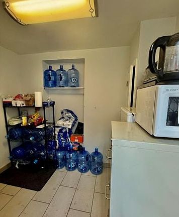 Office spaceFinished basementInterior staircaseSmall kitchen areaRestroom in the back