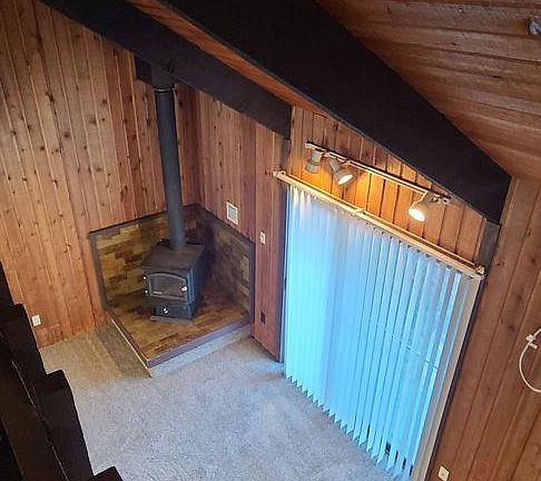 This gorgeous loft style 1 Bed / 1 Bath unit is located on the Spokane river and comes with beautiful features. A big living room area features a fireplace and a big window with a sliding door that leads to a private patio and produces lot's of natural light. The kitchen is equipped with a range of appliances such as refrigerator, dishwasher, stove and spacious wooden cabinets with plenty of counter top space. Unit is accented out with dark wooden beams that gives the unit a rustic feel. The bedroom is located upstairs and includes a spacious closet. The bathroom has a dark wooden vanity with extra storage below.