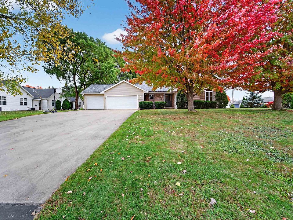 Country-like living on Appleton’s north side! Located on a quiet cul-de-sac, this home sits on over a half-acre double lot with a 3-car garage. The spacious backyard offers a zero-maintenance privacy fence, garden space, and mature trees. Inside features vaulted ceilings, a gas fireplace, 1st-floor laundry, central A/C, and a large primary with walk-in closet. The 1300 sqft lower level adds storage and potential with a pellet stove. Updates include a new roof, doors, windows, flooring, and TDS fiber internet. Lovingly maintained by only two owners! Some photos are virtually staged.