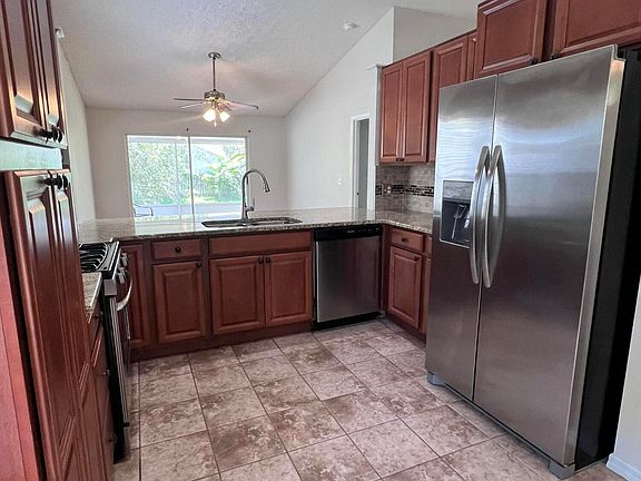 Gas stoveGranite countertopsOpen floor planVaulted ceilingsSplit planTile floorScreened patio