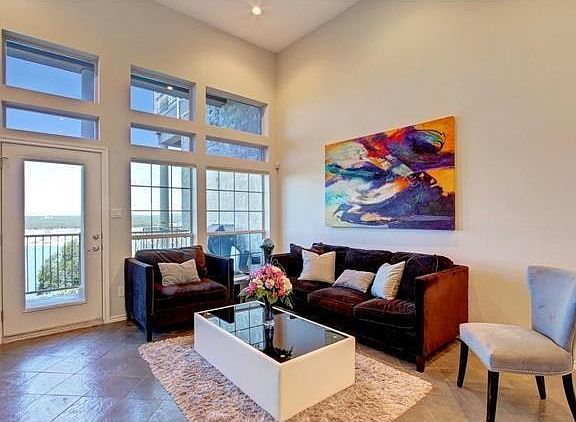 RARE waterfront rim unit with uninterrupted lake views. Acacia solid hardwood floors, designer lighting, floating built-in entertainment center, mosaic glass tile, computer work station, stainless steel appliances. Day dock, tram to lake, tennis courts, nature trails, two swimming pools, fitness center. Water and basic cable connection included.