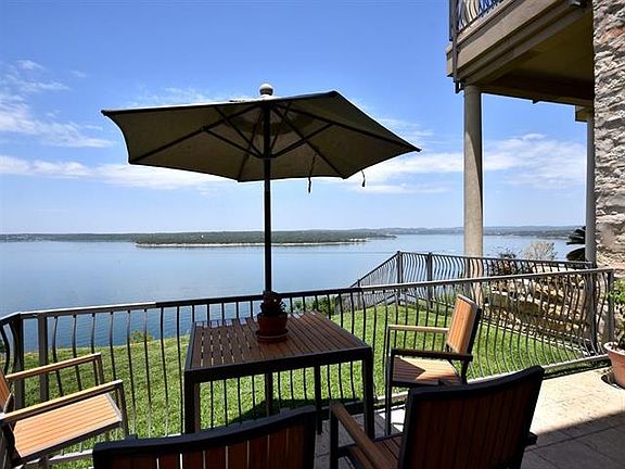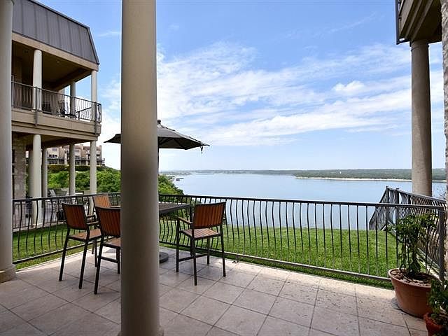 RARE WATERFRONT CONDO IN THE VILLAS ON LAKE TRAVIS! Gate from patio leads to a beautiful green lawn overlooking the lake. Updates include granite counters in the kitchen, subway tile back-splash & beverage refrigerator. Recently added range and microwave. HOA dues include exterior & common area maintenance , basic internet/cable, water, sewer, garbage, 2 pools, sport & tennis courts, gym, tram to lake, & day dock.