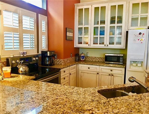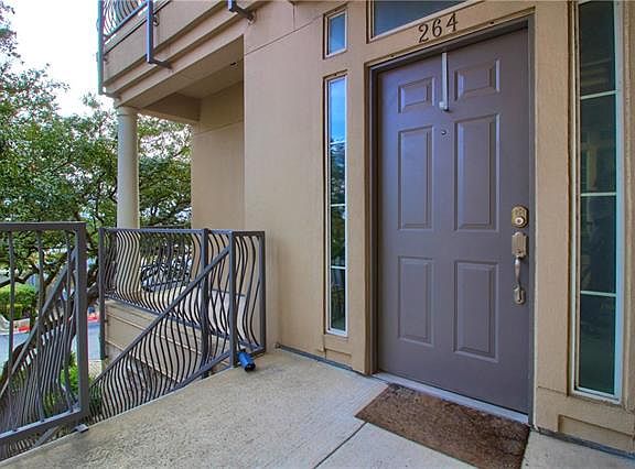 Right on Lake Travis! Excellent location. Nice view of the water from the master bedroom and 2nd-story balcony! Cozy fireplace in the master bedroom, his/hers vanities tastefully done in river rock, and yes, a view of the lake. Guest bedroom/office on main floor. Plant. Shutters. White cabinets and decorative glass doors in kitchen and granite counter tops and on wet bar with a mini-fridge. Next to the very large balcony with view of the tennis court. HOA includes most utilities and all amenities.