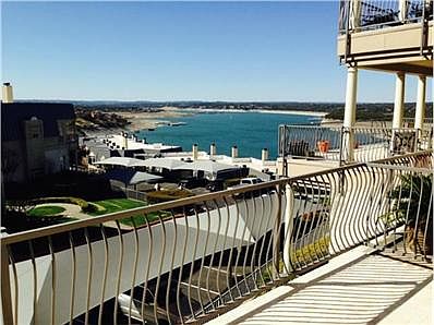 A Luxury Condo, French Architecture, located at the Villas on Travis, for the persons with an active lifestyle, a 2 Bedroom 2 & 1/2 Bath, completely remodeled, new stainless steal appliances, new designer paint, new carpet, new stone tile on large main patio & lake view MB patio, 2 swimming pools, hot tubs, tennis & sports court, workout center, tram to the 2 story dock located on Lake Travis, a Security Officer, & has a 5 person on location maintenance crew. Recently replaced AC.