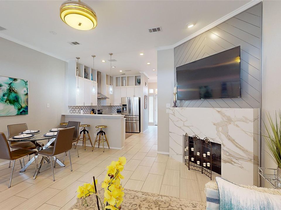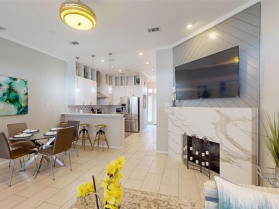 Stainless steel appliancesTri-level townhouseCustom marble fireplaceBreathtaking sunsetsStunning kitchenLighting fixturesExquisite backsplash