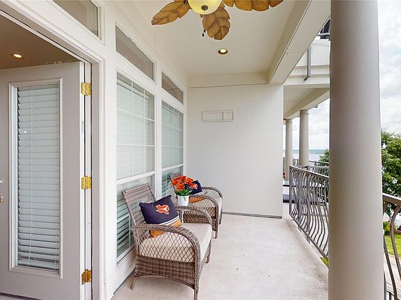 Luxury Lake Travis Resort Living. A gated residence with 180 degree lake views & breathtaking sunsets from your 5 balconies. This gorgeous tri-level townhouse has 4beds/4bath, a stunning kitchen with a custom marble fireplace, stainless steel appliances, exquisite backsplash and lighting fixtures. Furniture and decor negotiable with a full price offer. HOA FEE includes pools, gym, tennis and basketball court, marina dock, internet cable, water, insurance & grounds maintenance.