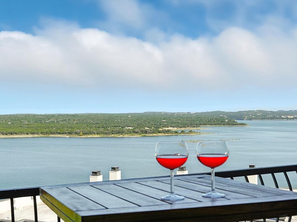 Lakefront Lifestyle with Private Pool Access! This rare condo lives like a townhome and features 2 bedrooms, 2.5 baths, two balconies, a patio, and direct access to the community pool. Located in a quiet, gated complex on Lake Travis, it's perfect as a full-time home or lock-and-leave retreat. The main level offers an open layout with a bright living/dining area, fireplace, and sliding doors that open to a private patio just steps from the pool. The kitchen includes granite countertops, stainless steel appliances, a breakfast bar, and ample cabinet space. A guest powder bath completes the first floor. Upstairs, both bedrooms have private en-suite baths and balconies with lake or greenbelt views. The primary suite includes a walk-in shower and large closet. Additional features include in-unit laundry, gated entry, and reserved covered parking. Enjoy resort-style amenities: lakeside pool, picnic areas, BBQ grills, and private lake access for kayaking, paddleboarding, or relaxing by the water. Landlord pays water, internet, trash, and Wi-Fi a rare bonus for waterfront living. Minutes to lakefront dining, shopping, and trails, and a short drive to downtown Austin.