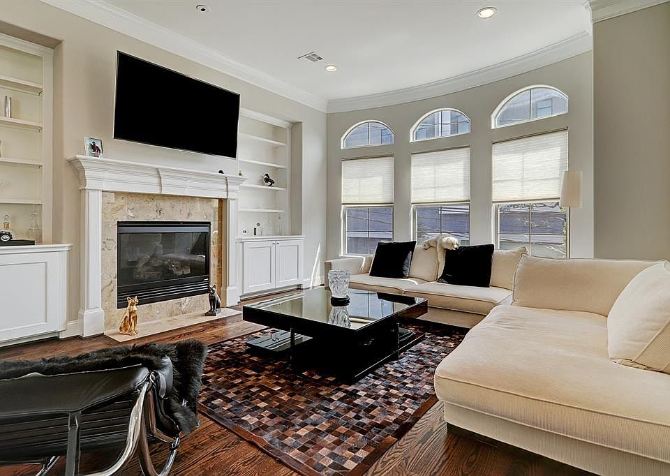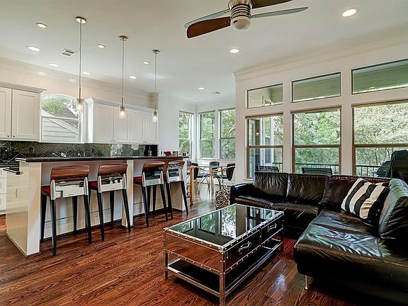Located in the heart of Upper Kirby just steps to Whole Foods & many 5 star restaurants. This gorgeous home offers executive style entertaining with high ceilings & a beautiful iron sculpted sweeping stair case. Large travertine foyer to greet your guests as they ascend to the spacious second level living space with a sunken living area. The formal dining area is open & airy & graced with triple crown moulding. The kitchen is a gourmet's delight - ample storage, top of the line stainless steel appliances, window over the sink, large breakfast bar over looking the family room. Separate is a breakfast area surrounded by windows that take in the mature trees in the back yard. A balcony access is just off of the breakfast area where you can keep your grill and have additional seating. Master suite is over-sized & offers a seating area & balcony viewing out to the mature oaks. Master bath is luxurious & offers a large walk in closet.This is a must see ! Fresh & READY to MOVE IN !