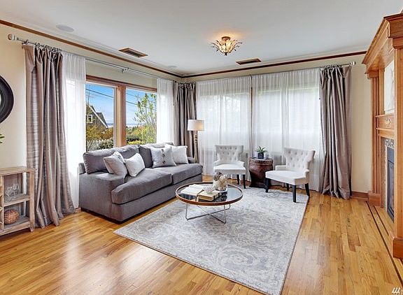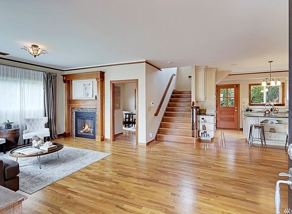 Built in 2009, perfectly blending elegance with functional living space. Excellent floor plan with 3 beds up and 1 on main. Open living, kitchen & dining w/ huge fireplace & Sound views. Spacious kitchen w/ slab granite surfaces & center island. Huge master suite with Jacuzzi tub & separate shower. Features; hdwd floors, all 3 baths have underfloor heat, rare 2 car garage, craft/workout room & charming white picket fenced brick patio. Ideally located by the Village with a quick commute to downtown.