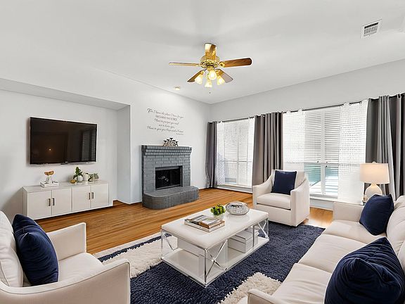 Welcome to 2919 Beau Drive in Creek Crossing Estates. This Highland built one story offers 3 bedrooms, 2 baths and over 2000 sq ft of living space. The open layout features high ceilings, laminate wood floors and a brick wood burning fireplace. Two living and two dining areas give plenty of room to spread out. A large enclosed sunroom overlooks the colossal backyard with room to play, garden or entertain. The long driveway with carport leads to a 2 car garage, offering extra parking and storage. Sitting on a quarter acre lot in Mesquite ISD, this home is close to parks, schools and city amenities. No HOA. See video for drone footage and 3d tour.