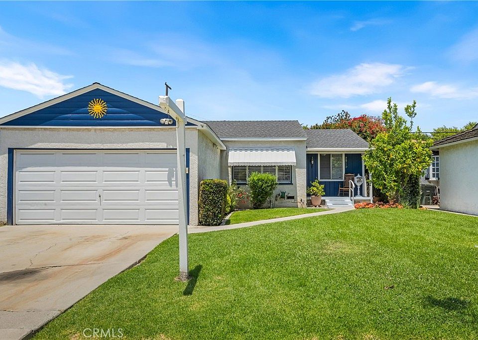 Fabulous cottage situated mid block on a very quiet tree lined street in the desired Lakewood Mutuals. This wonderful home features original oak hardwood flooring with plantation shutters in the living room, large dining space, generous kitchen with lots of cabinetry and an open view of the family room. The large bathroom boasts a roomy layout with a skylight to keep things cheery. The added family room is sure to impress, complete with open beam vaulted ceilings, AC, and cozy brick fireplace. This large added space segways perfectly to the back patio and yard which offers privacy, a lime tree, and plenty of opportunity to entertain. Additional features include a 2 car garage with storage and auto opener, newer electrical panel (2021), and newer water heater (2020). This must see property is close to parks, schools, shopping and all major freeways. Hurry, this one will not last!