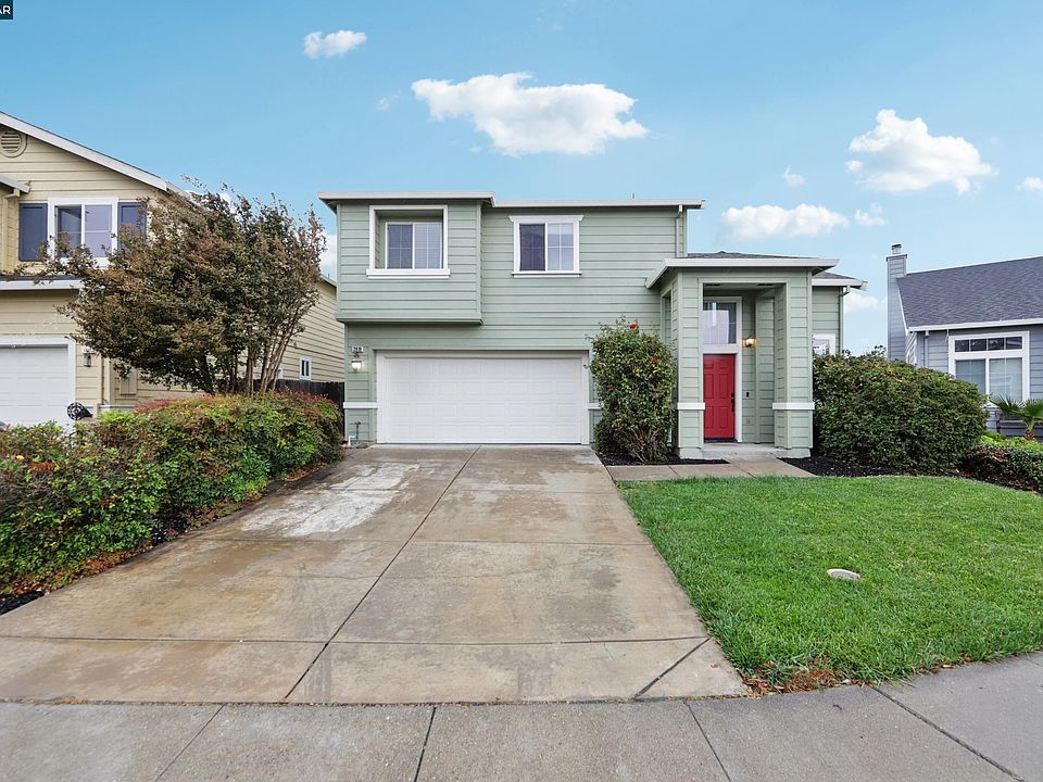 Welcome Home! This freshly updated 3-bedroom, 2.5-bathroom home welcomes you with a bright and open layout. As you enter through the front door, you’ll step into a spacious living room with a formal dining area and abundant natural light from numerous windows. The first floor also offers an updated guest half bath. The kitchen has a fresh, modern feel with ample cabinets, updated countertops, and stainless steel appliances. It opens to a comfortable family room featuring a cozy fireplace—perfect for relaxing during those chilly evenings. Upstairs, you’ll find two comfortable bedrooms and a hall full bath, conveniently located next to a laundry closet. The serene primary suite offers a relaxing space and a large primary bathroom for your daily retreat. Step outside to a low-maintenance backyard with a covered patio that provides a garden-like feel—great for outdoor entertaining. Location: Short Drive to ACE TRAIN/ Downtown Tracy & Everyday Shopping Needs. Don’t miss this one—it's a must-see!