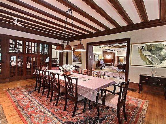 Incredible private estate surrounded by 5 acres of rolling terrain and hardwoods. Enjoy over 330 feet of pristine Lake front, tennis court, in-ground pool, sauna, playhouse and new 80ft pier. Handsome masonry fireplaces are found in living, dining and kitchen areas. Lakeside living includes a large 800 square ft. conservatory (added 2016) and sunroom. Recent improvements to kitchen and baths are simply stunning. Upper levels include seven spacious bedrooms, six bathrooms, billiard and game room. 2016 remodel included re-carpeting, converting screen porch to a 800 sq. ft. conservatory, adding finished sq. ft. on the 3rd floor to include a bonus room, playroom, and media room. a Private beach was also added to the lake frontage.