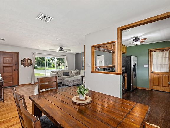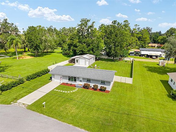 Under contract-accepting backup offers. Beautiful, move-in ready home on a quiet cul-de-sac, situated on a nice-sized half-acre lot. Enjoy a vinyl privacy-fenced backyard with a covered porch, firepit area, and plenty of room to play. A 30x25 detached building/workshop with a 10-ft high garage door offers incredible flexibility—currently used as a playroom, gym, and flex space—with concrete floors, full insulation, a moveable AC unit, and a lean-to for boat or equipment storage. Inside, you’ll find original wood floors in most areas, laminate in the kitchen, and tile in the bath. The home features a great room, dining area, stainless appliances, neutral paint, and an attached garage. Plans for a master walk-in closet and bathroom addition are available to share with the buyer. Roof 2022. Located near Jim Kirk Park with trails, open green space, and a playground. Endless possibilities—don’t miss this one!