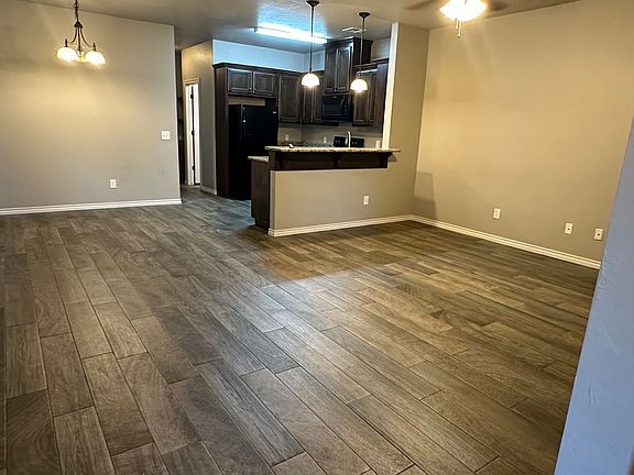 Open floor planFree stand rangeTile wood plank flooringBreakfast barCeiling fansOver-the-counter microwaveWasher and dryer hook-ups